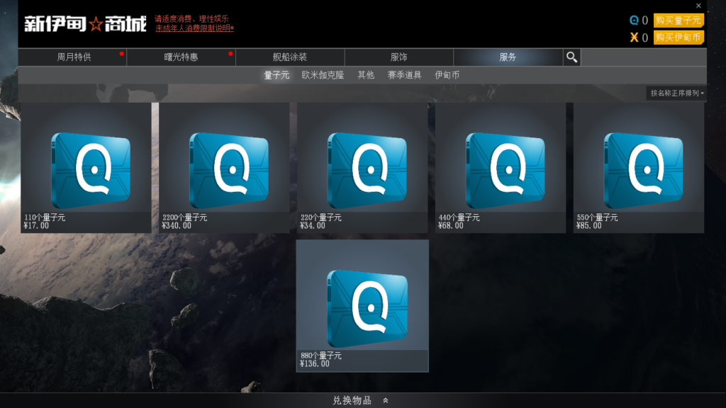 中国的曙光服比起欧服多了个除伊甸币之外的电子货币,叫做量子元。真是中国特色,不知道CCP公司日后会不会跟进?